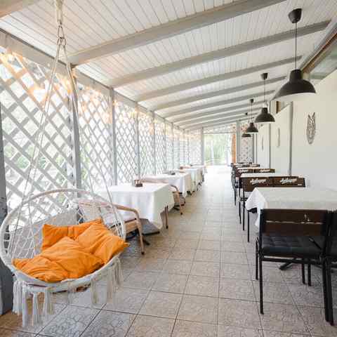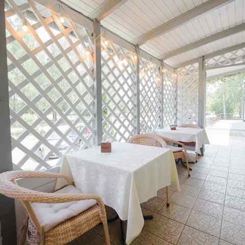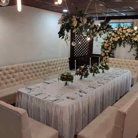 Здесь можно организовать шикарную свадьбу, веселый корпоратив, деловую встречу или просто отдохнуть в хорошей компании. Есть место для выездной регистрации. Гостей до 2 часов ночи будут развлекать живая музыка в исполнении талантливых артистов. Можно организовать украшение банкетного зала. Для любителей вкусно покушать на свежем воздухе есть большая летняя терраса.