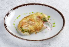200 г • в тарталетке из слоеного теста запекается нежный жульен из говяжьего языка с шампиньонами и лучком