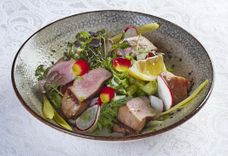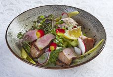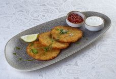 280 г • хрустящие драники с сырным кремом, форель с/с, св. зелень, св. огурец