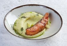 270/100 г • Изысканный десерт из яблок, клюквы и картофеля; подаётся с лимонной сметаной