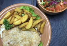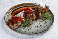 120 г • филе куриное, ветчина, шампиньоны, помидоры св., сыр, майонез