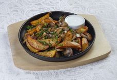 265/50 г • жареная домашняя картошечка с грибами (вешенки, шампиньоны), подается со сметаной