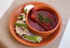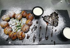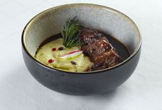 270/100 г • Изысканный десерт из яблок, клюквы и картофеля; подаётся с лимонной сметаной