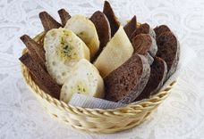 150/40 г • бородинский хлеб, обжаренный до хрустящей корочки, с чесноком и пармезаном, соус на выбор