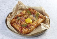 380 г • хрустящее французское тесто с ароматными сырами и яйцом глазунья
