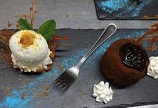 130/50/20/20 г • Нежный бисквит с горячим шоколадом внутри и шариком мороженого