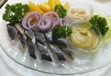 350 г • филе сельди, обжаренный из отварного картофель, репчатый лук, зелень