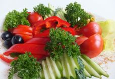310 г • ассорти из свежих огурцов, томатов, перца, сельдерея, с маслинами, оливками, зеленью